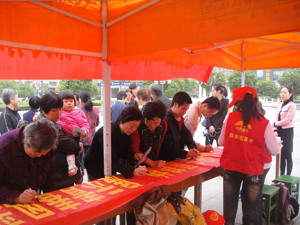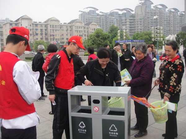 5月4日上午,由校團委和臨安團市委共同主辦的“弘揚志愿者精神,展示青春風采,環保文明我先行”暨迎“五四”青年志愿者環保文明宣傳招募活動在臨安市人民廣場火熱舉行。校青協的志愿者們向市民們講解環保文明知識,發放環保文明宣傳手冊,倡導低碳環保行為。市民們也停下腳步,拿起火鉗、垃圾桶等工具,撿拾周邊的垃圾并進行分類,親身參與到環保行動中,爭做環保志愿者。