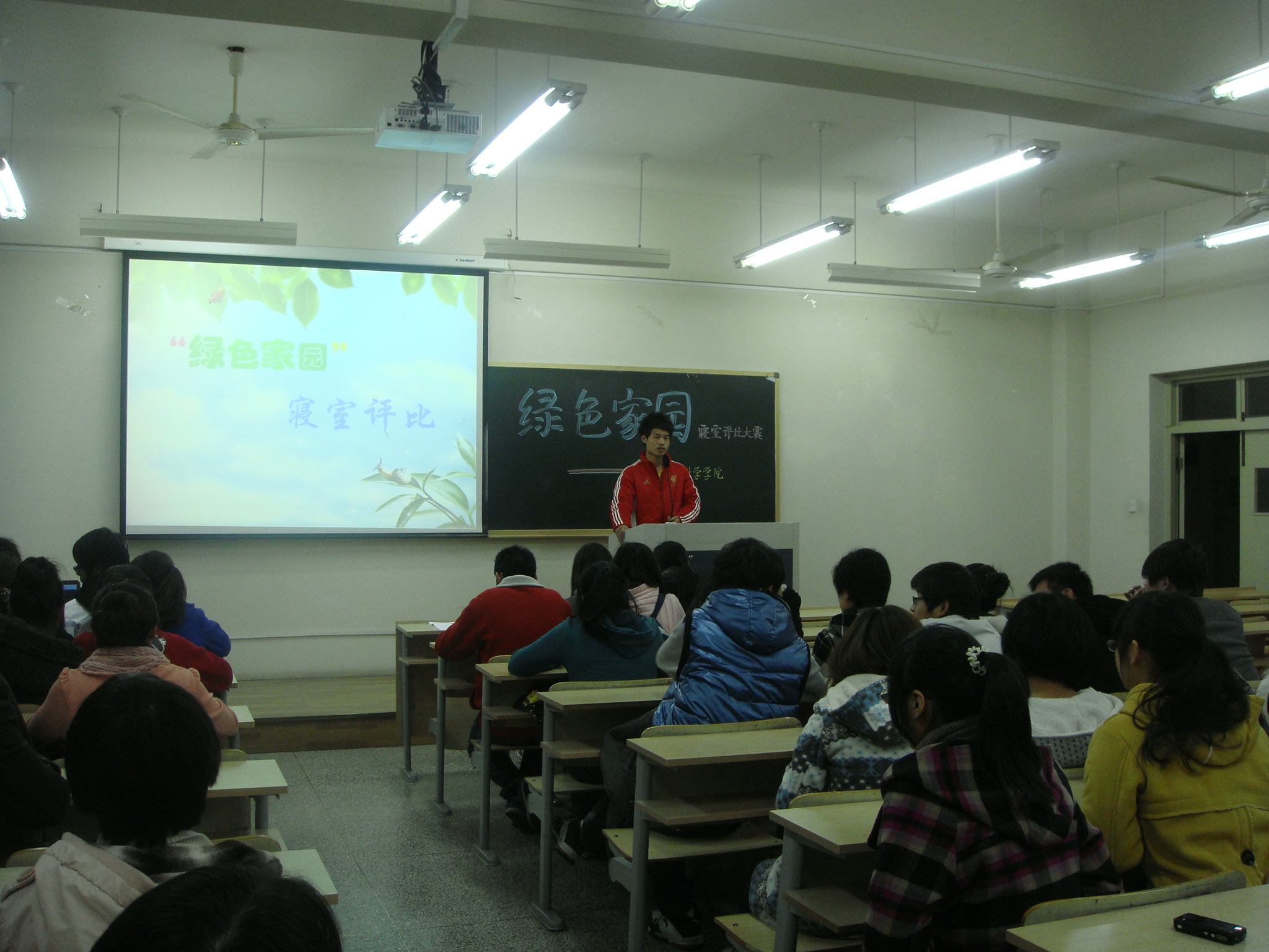 各參賽寢室代表分別以PPT形式向評委和同學們介紹了各自寢室的活動主題、設計創意及亮點特色。演講過程中,臺上臺下的互動積極,氣氛濃烈。最終A1-406寢室摘得桂冠,C2-113寢室和C2-115寢室分獲亞軍和季軍。
