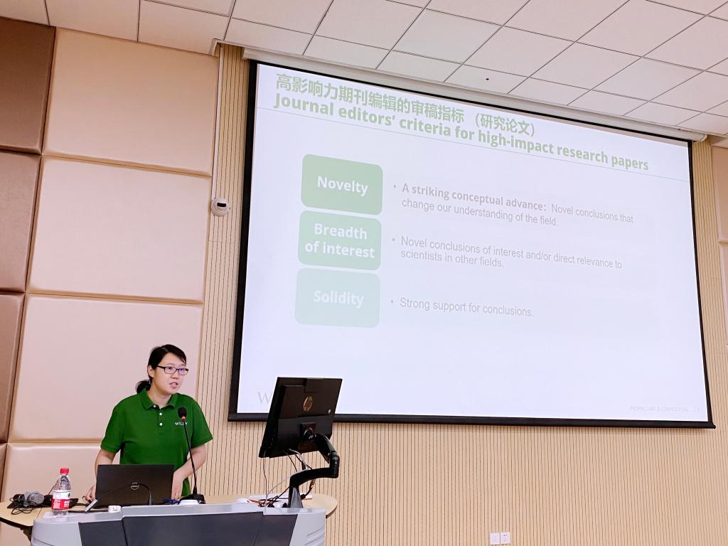肇濤瀾以期刊編輯的專業視角,對研究創新性、公眾興趣以及高質量論文撰寫要點等方面進行了全面深入的介紹,并強調了論文投稿、審稿以及回答評審意見等環節中需要注意的關鍵要素。此外,她還詳細介紹了Wiley出版社情況以及旗下期刊類型,鼓勵在場師生積極投稿。