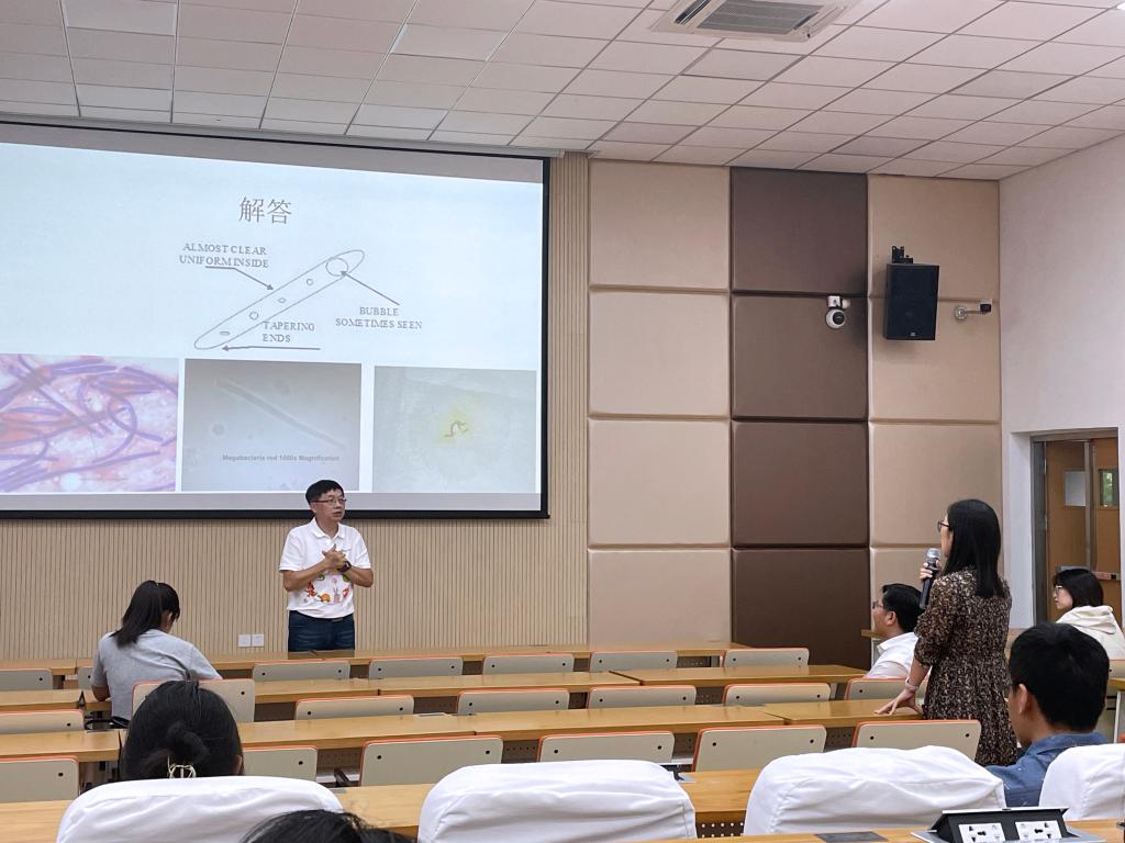 在報告互動提問環節,董光中耐心詳細地解答了師生們關于異寵液體麻醉、烏龜白眼病診療方案、爬蟲類鼻腔清洗、花枝鼠診療、兔子齒槽膿腫等方面的具體細節和問題。在場師生們紛紛表示受益匪淺,本次報告不僅豐富了他們的知識,也為未來對于異寵的診療和研究提供了寶貴的指導。
