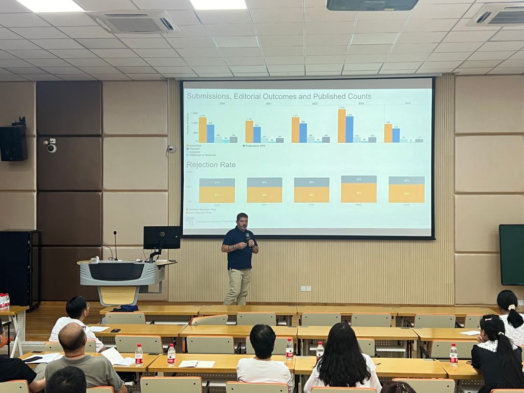 作為微生物學(xué)領(lǐng)域國(guó)際權(quán)威期刊《International Journal of Food Microbiology》主編,Luca Simone Cocolin教授與大家分享了“Accept or Reject vs Publish or Perish from Editor's Perspectives”的專題報(bào)告。他以專業(yè)的視角,深入分析了學(xué)術(shù)出版的流程,并強(qiáng)調(diào)了投稿策略、寫作技巧、投稿流程的重要性。此外,他還探討了人工智能在論文撰寫中的創(chuàng)新應(yīng)用,為在場(chǎng)師生提供了全新的學(xué)術(shù)視角。