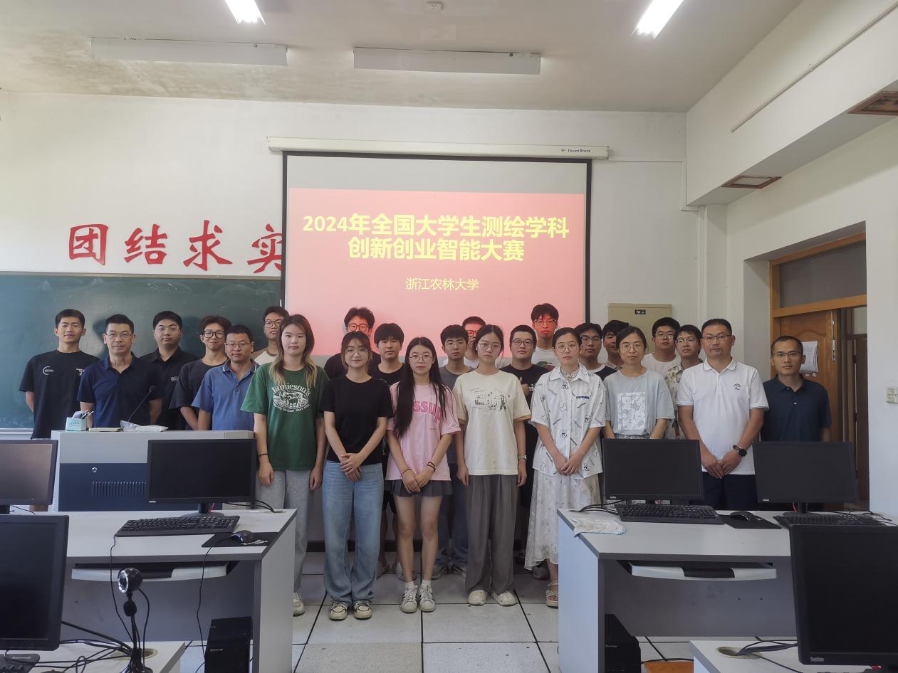 環資院、碳中和學院高度重視學科競賽,優化競賽指導體系。6月初主辦校賽,遴選優秀學生參加國賽;7月初,組建12名指導教師和20名參賽學生的浙農林大測繪學科競賽集訓隊伍。學院選拔經驗豐富、責任心強的老師擔任指導老師,并邀請浙江南方測繪科技公司負責人和技術人員現場輔導答疑和在線提供技術支持,學院相關負責人還多次視察競賽集訓室和慰問參賽同學。