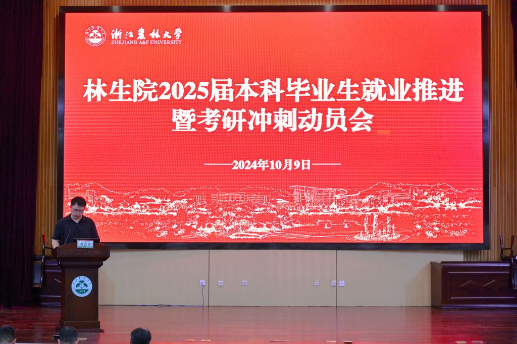 10月9日,林生院在圖書館第一報(bào)告廳舉辦了2025屆本科畢業(yè)生就業(yè)推進(jìn)暨考研沖刺動(dòng)員會(huì)。林生院黨委書記鄭炳松、分管研究生教學(xué)負(fù)責(zé)人和學(xué)生工作負(fù)責(zé)人出席動(dòng)員會(huì),2025屆全體畢業(yè)生參與會(huì)議,本次動(dòng)員會(huì)由畢業(yè)生輔導(dǎo)員主持。