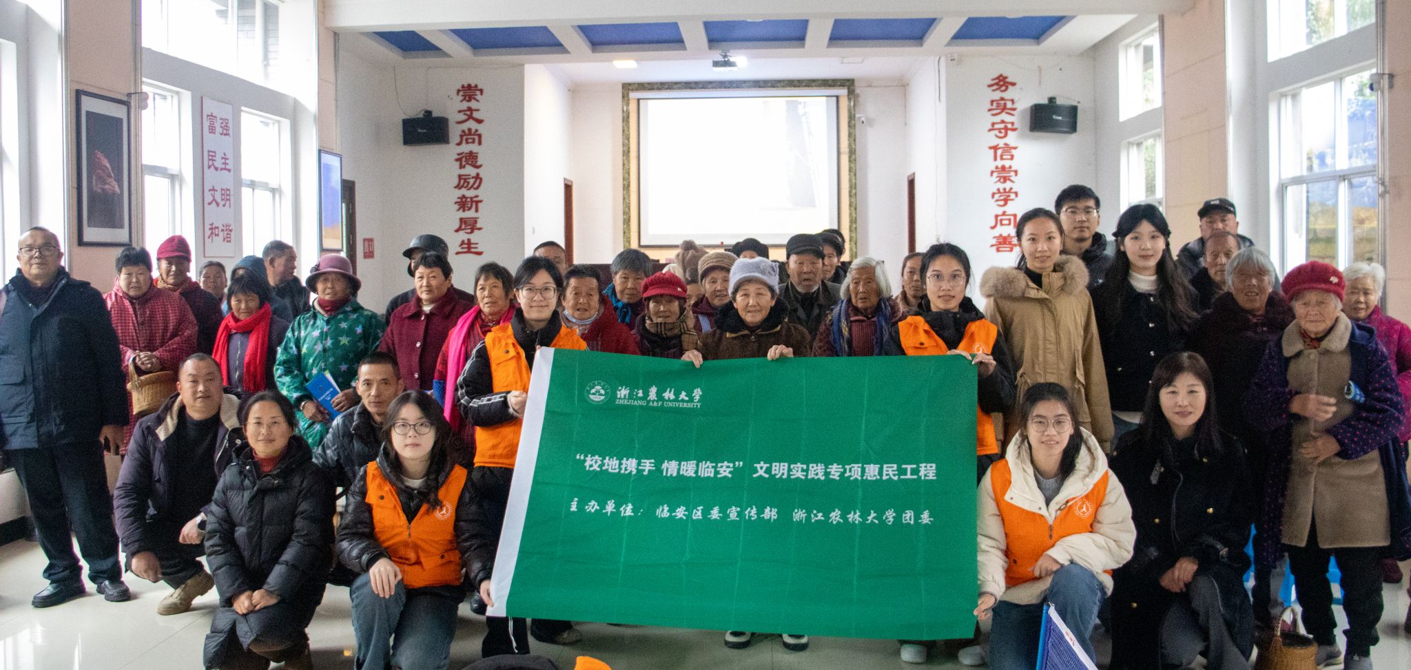 12月13日,食健學院師生團隊赴臨安龍崗鎮國石村開展“校地攜手 情暖臨安”活動,國石村村干部以及30余位村民參加活動。