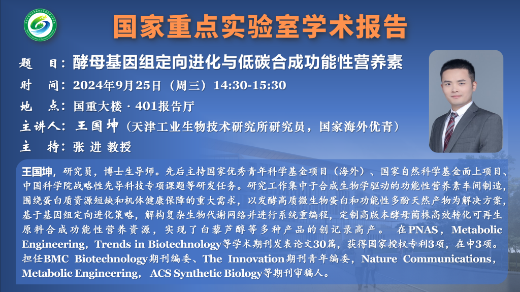 講座預告:酵母基因組定向進化與低碳合成功能性營養素