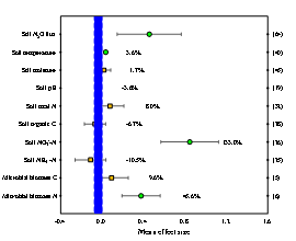 圖2 森林采伐對土壤N2O通量及其相關過程的土壤因子影響的平均效應值
