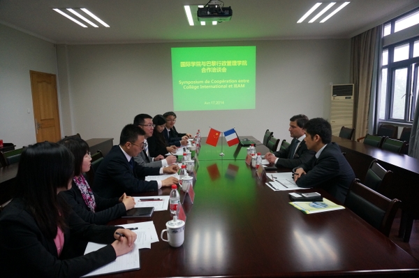 4月17日上午,國際學(xué)院與巴黎行政管理學(xué)院在學(xué)15會議室洽談國際教育合作項(xiàng)目。巴黎行政管理學(xué)院院長理查德-德萊教授和院長助理徐明博士,國際學(xué)院副院長邱亦維、黎燕、陳立杰以及各中心負(fù)責(zé)人參加會議。